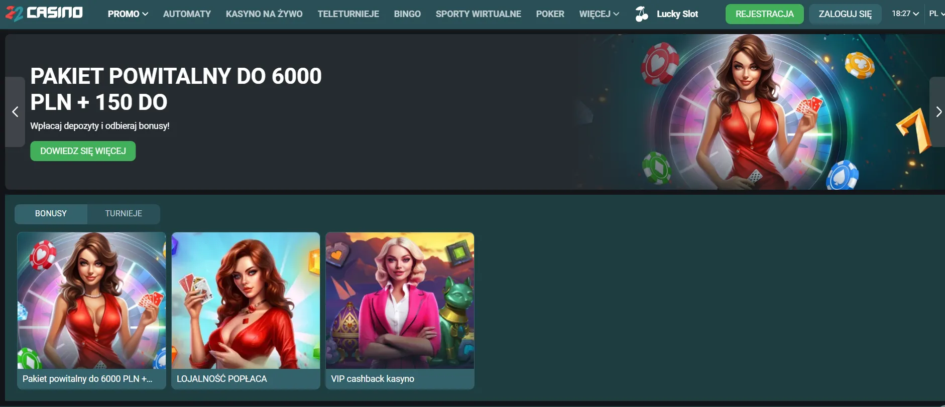 22 Casino łączy bogatą ofertę gier, ciekawe promocje i sprawne wsparcie techniczne. Kasyno online wyróżnia się hojnym pakietem powitalnym i systemem cotygodniowego cashback nagradzającym lojalność graczy.