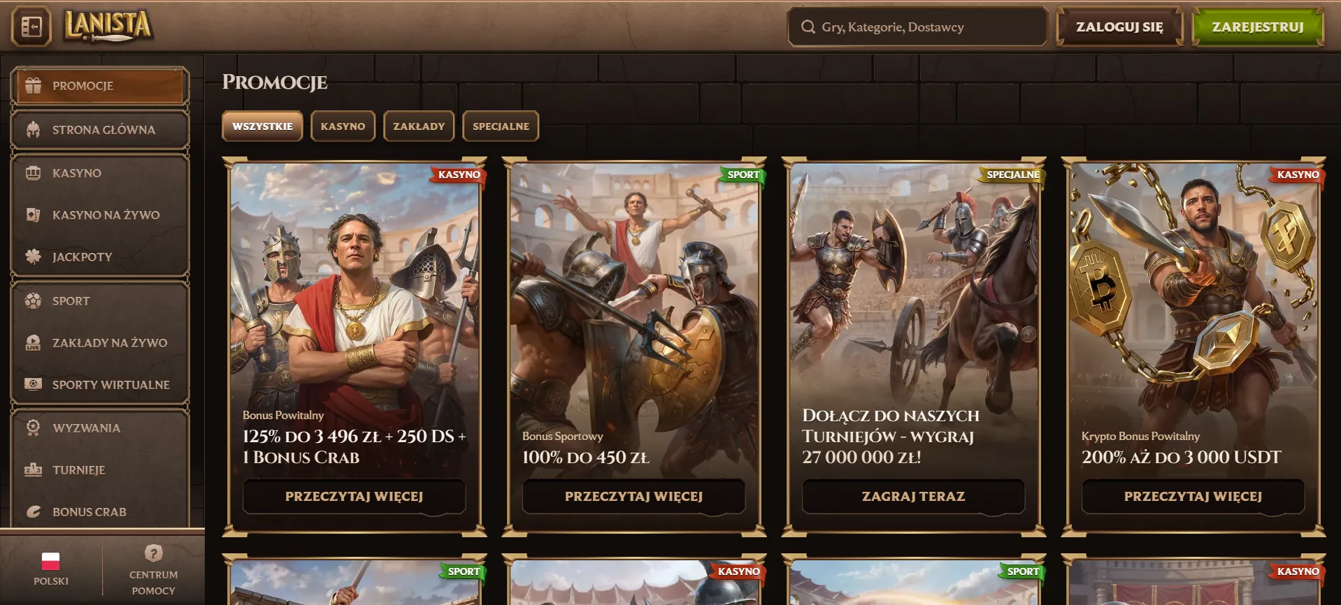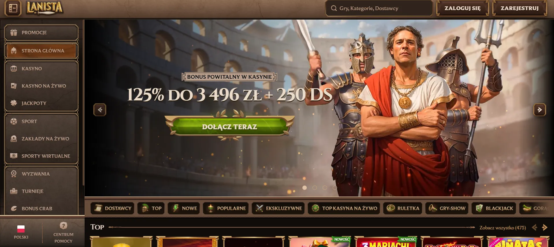 Lanista casino oferuje ponad 5000 gier od niemal 100 dostawców oprogramowania. Platforma działa na licencji z Anjouan i daje dostęp do automatów, gier stołowych, transmisji na żywo oraz rozbudowanego programu bonusowego. Serwis przyjmuje polskich graczy i umożliwia rozliczenia w złotówkach, dzięki czemu nie trzeba martwić się przeliczaniem walut.