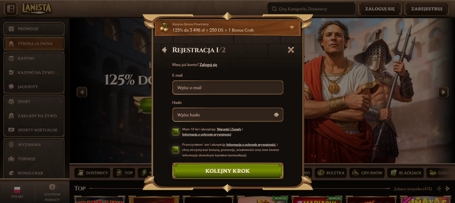 Jak zarejestrować konto w Lanista casino: