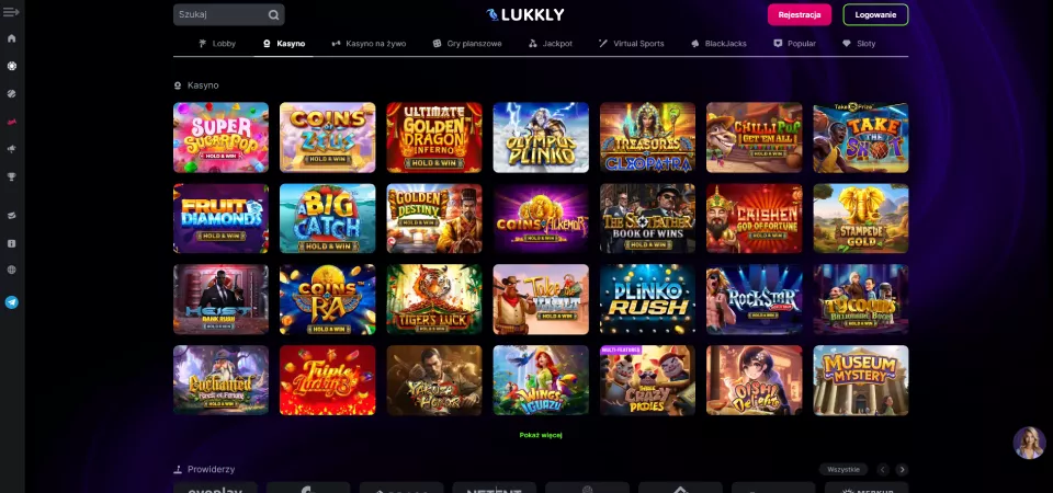 Gier w Lukkly Casino jest ponad 5000 – imponująca biblioteka tytułów od wiodących dostawców oprogramowania. Platforma współpracuje z ponad 90 dostawcami, między innymi z Pragmatic Play, Spribe czy NetEnt.