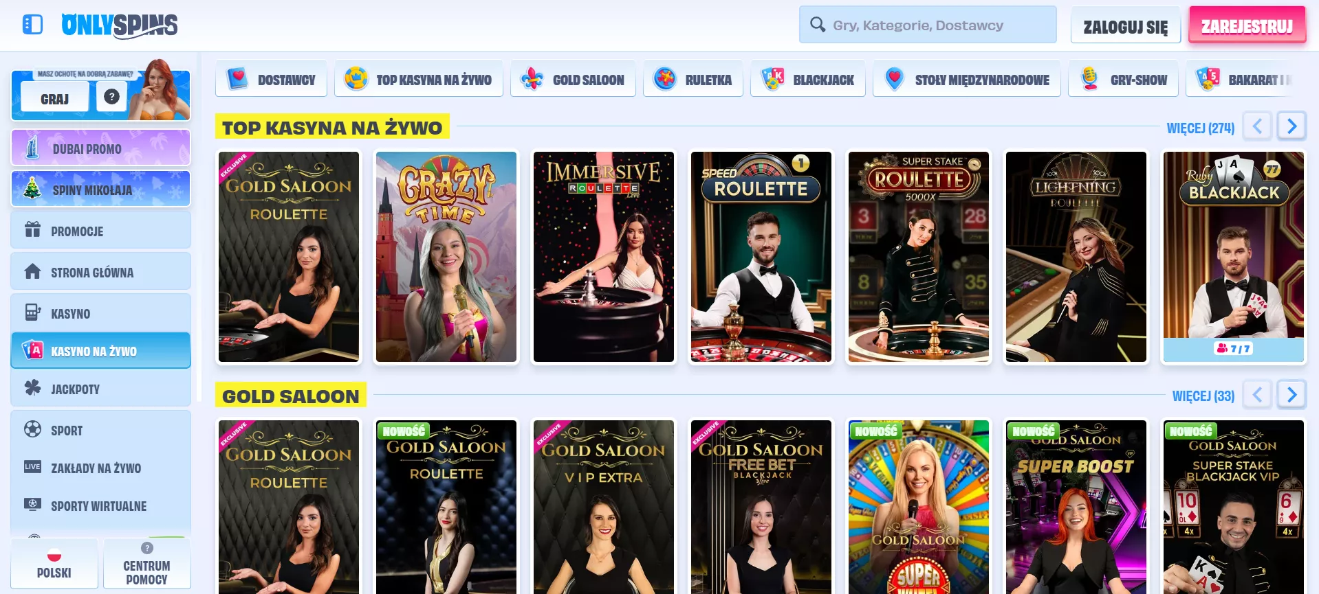Gry stołowe to kolejny mocny punkt. Ruletka, blackjack, baccarat, poker – wszystko w kilku wariantach. Sekcji zakładów sportowych nie ma, ale bogactwo gier w OnlySpins to rekompensuje.