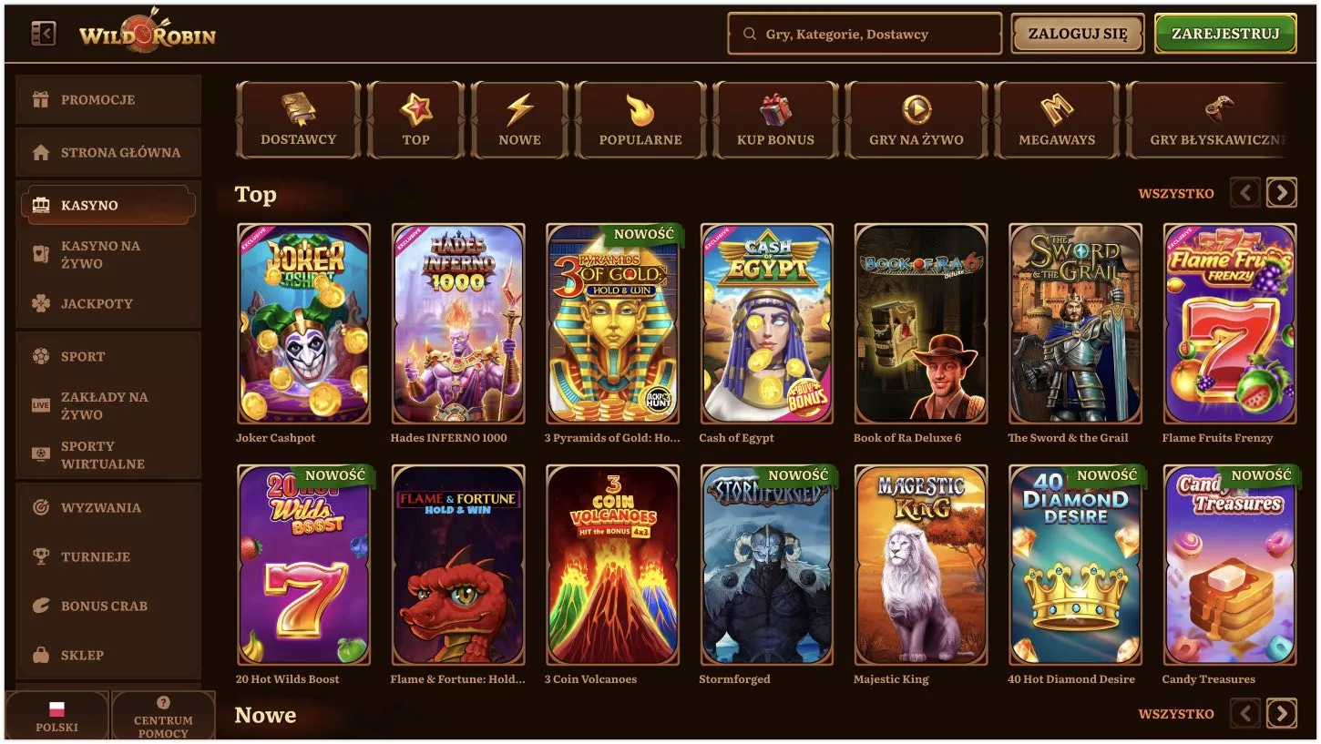 Wild Robin casino ma bibliotekę ponad 17 000 gier od 70+ dostawców. To jedna z największych kolekcji na rynku – każdy znajdzie tu coś dla siebie.