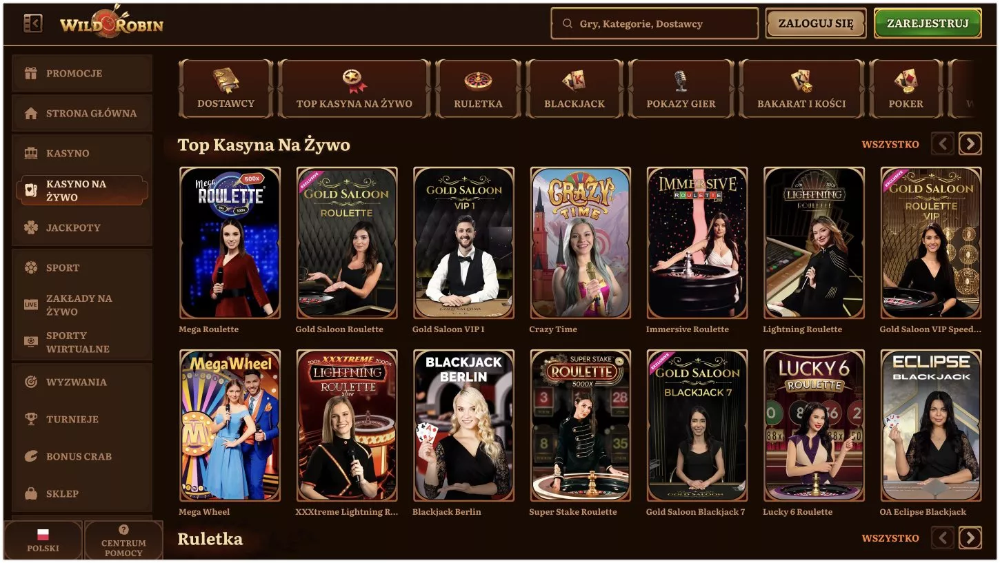 Tak, większość gier w Wild Robin casino jest dostępna w trybie demo bez rejestracji i wpłaty. Wchodzisz na stronę, wybierasz grę i odpalisz wersję testową. Super opcja, żeby poznać mechanikę slotów przed grą na realne pieniądze. Tryb demo nie obejmuje jednak gier z kasyno na żywo.