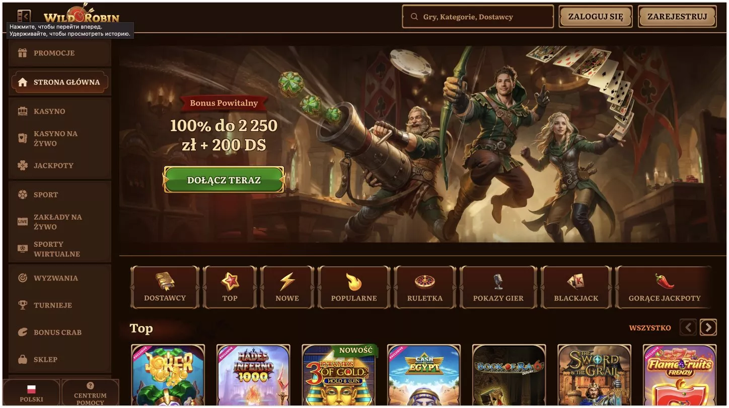 Strona została przystosowana dla polskich graczy – nie tylko język, ale też lokalne płatności jak BLIK. Program lojalnościowy ma 5 poziomów, a bonus powitalny sięga 2250 PLN plus 200 darmowych spinów. Wild Robin Casino online z pewnością ma czym przyciągnąć nowych użytkowników. Ta Wild Robin casino review przeanalizuje wszystkie ważne aspekty działania operatora.