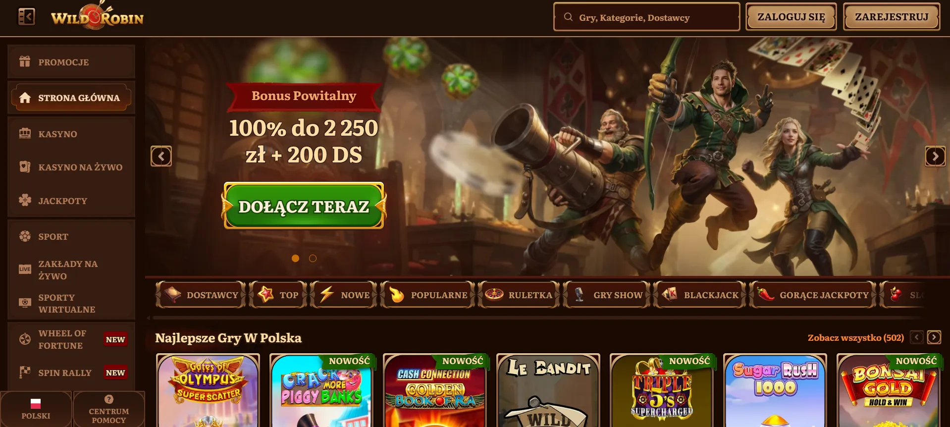 Strona została przystosowana dla polskich graczy – nie tylko język, ale też lokalne płatności jak BLIK. Program lojalnościowy ma 5 poziomów, a bonus powitalny sięga 2250 PLN plus 200 darmowych spinów. Wild Robin Casino online z pewnością ma czym przyciągnąć nowych użytkowników. Ta Wild Robin casino review przeanalizuje wszystkie ważne aspekty działania operatora.